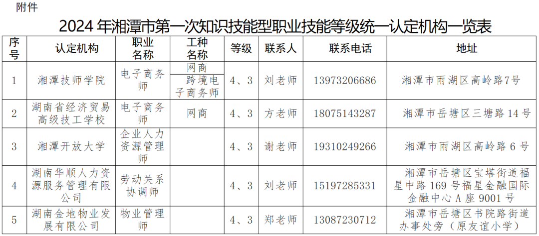 為進一步提高全省技能人才評價質(zhì)量,提升職業(yè)技能等級證書含金量,省人社廳定于4月實施2024年第一次知識技能型職業(yè)技能等級統(tǒng)一認定,湘潭共有5家職業(yè)技能等級統(tǒng)一認定機構(gòu),可方便和服務(wù)廣大勞動者就地就近參與認定。