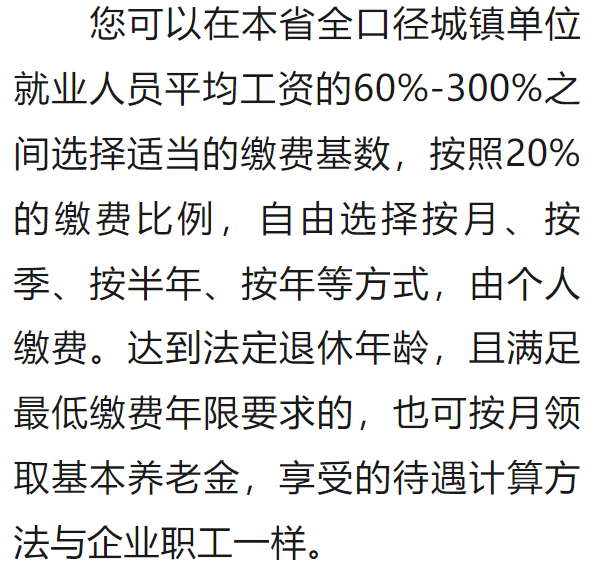 情況三:制度實施時,您距60周歲的規(guī)定領取年齡超過15年,應按年繳費,累計繳費不少于15年才能領養(yǎng)老金。